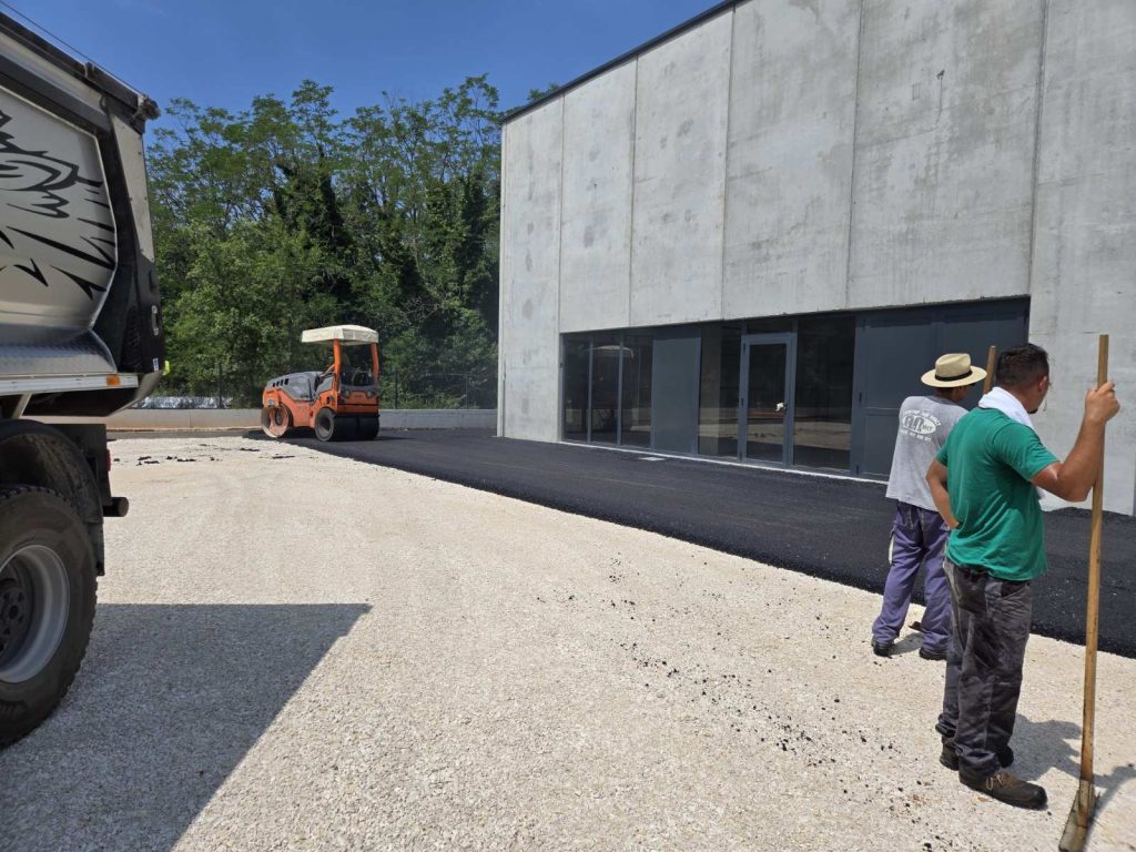 Završna faza radova oko objekta upravo je u tijeku – asfaltiranje površina koje okružuju halu. Ovaj korak ima izuzetnu važnost, jer osim estetskog dojma, donosi i konkretnu funkcionalnu vrijednost u svakodnevnom korištenju prostora.