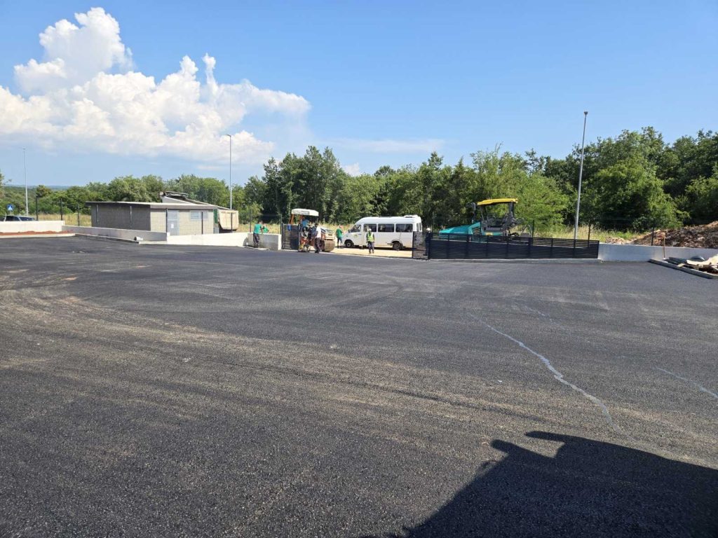 Asfaltiranjem se osigurava nesmetan pristup vozilima i korisnicima objekta, definira prometna logika kretanja i omogućuje dugotrajna otpornost na sve vremenske uvjete. Površine su prethodno pripremljene niveliranjem terena i postavljanjem tamponskog sloja, kako bi asfaltna podloga bila stabilna i trajna.