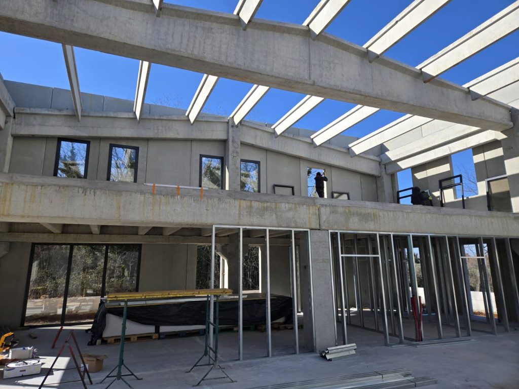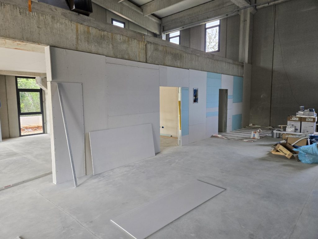 Interior works include a wide range of precise and coordinated tasks: from the construction of internal partition walls, insulation, and technical installations, to the final finishing of floors, lighting, and ventilation systems. Each step is carefully planned to meet the highest standards of quality and safety. Special attention is given to the technical infrastructure – electrical, plumbing, and fire protection systems – which form the backbone of the building’s functionality.