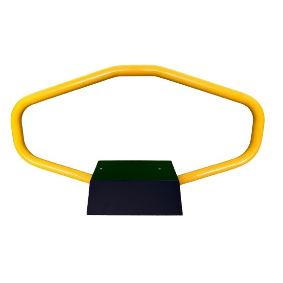 Barijera je izrađena u potpunosti od pocinčanog čelika s elektrostatskom praškastom plastifikacijom koja osigurava visoku otpornost na vremenske uvjete. Stabilna podloga debljine 8 cm omogućuje postavljanje čak i pod teškim vozilima, dok jajoliki luk širine 105 cm i visine 50 cm pruža optimalnu zaštitu parkirnog prostora bez rizika da sportski automobili udare u barijeru.